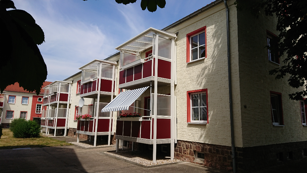 Die sanierte 2-Stöckige Wohnanlage besitzt groÃzügige Balkone. Insgesamt befinden sich 8 Wohnungen in 2 Eingängen in diesem Wohnobjekt. Die freundlich geschnittenen 3-Raumwohnungen haben eine Wohnfläche von ca. 66 m² bis ca. 69 m². Die Gesamtgebäudewohnfläche beträgt 535,65 m². Das Objekt wurde im Jahre 1957 errichtet.Beheizt wird das Objekt über Fernwärme mit Direktvertrag vom Versorger. Ãffentliche Parkmöglichkeiten befinden sich direkt vor der Wohnanlage. Ein separater Keller ist inklusive.